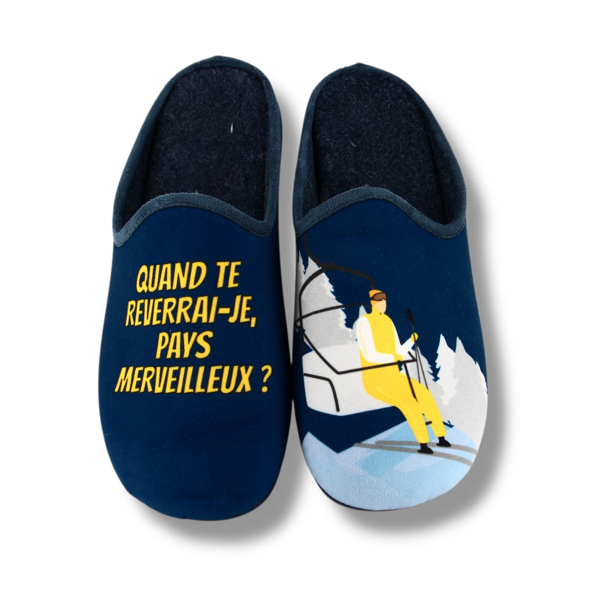 Des pantoufles ultra confortables au style nostalgique “Quand te reverrai-je, pays merveilleux”, inspiré du film culte.